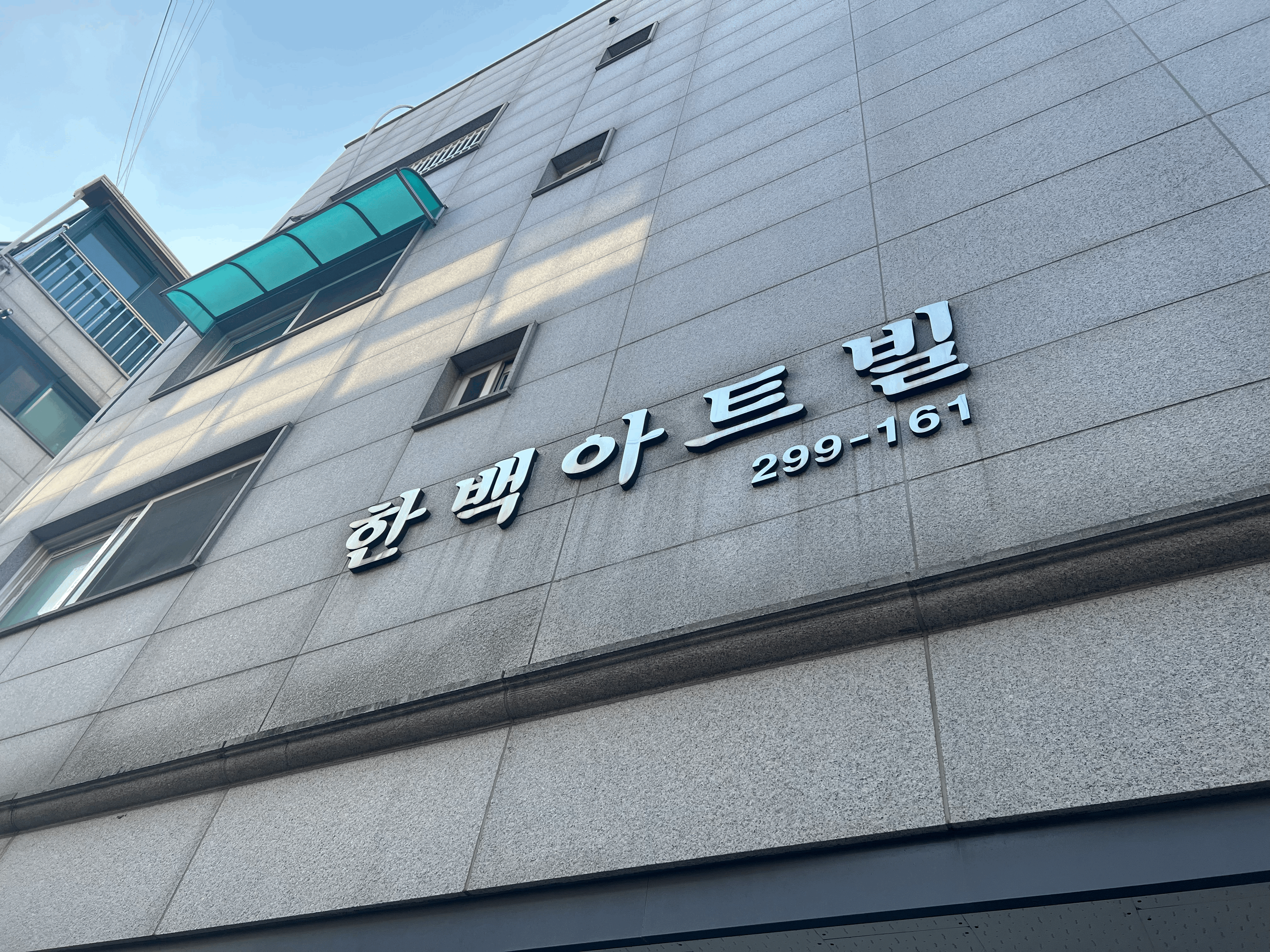 외관은 역시나 깔끔했고 엘베가 없었지만, 2층이라 상관은 없었고.. 사실 2층이라기보단 1층이 반지하에 있었기 때문에 1.5층에 가까웠다.